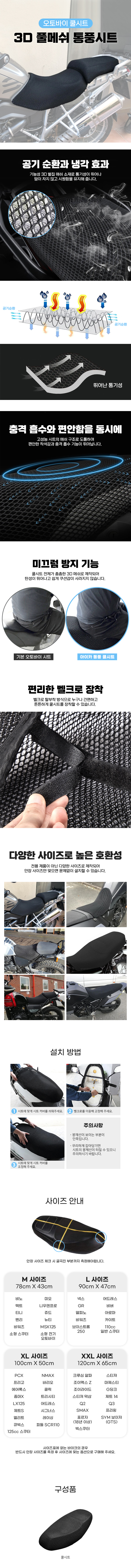 이미지 확대보기오토바이 메쉬 쿨시트 고탄력 통풍 시트 인체공학