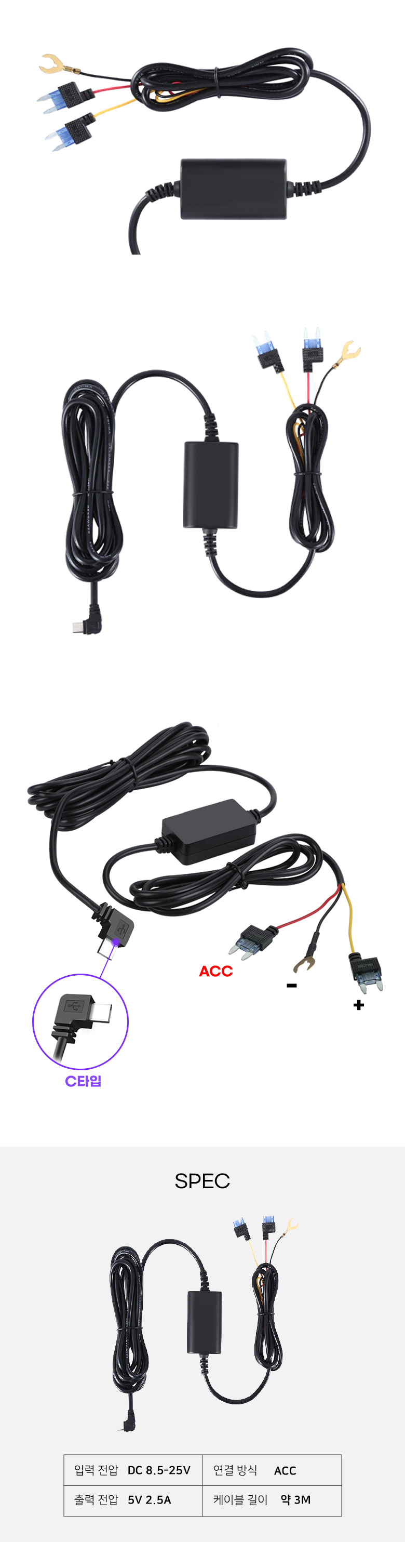 • c타입 카플레이 전용 상시 케이블 주차 녹화 저전압 V10